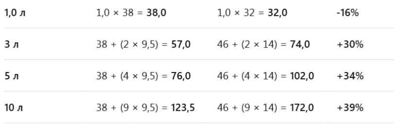 Từ 0,801 đến 1,000 lít — 32 Rúp trên mỗi lít